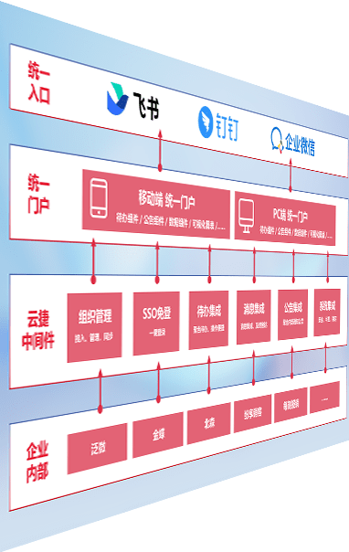 对协作平台提供支持服务,,支持企业应用与协作平台对接,,,,包含组织同步、、、消息集成、、、待办集成等。。。支持目前主流的协作平台:钉钉、、、、企微和飞书。。
