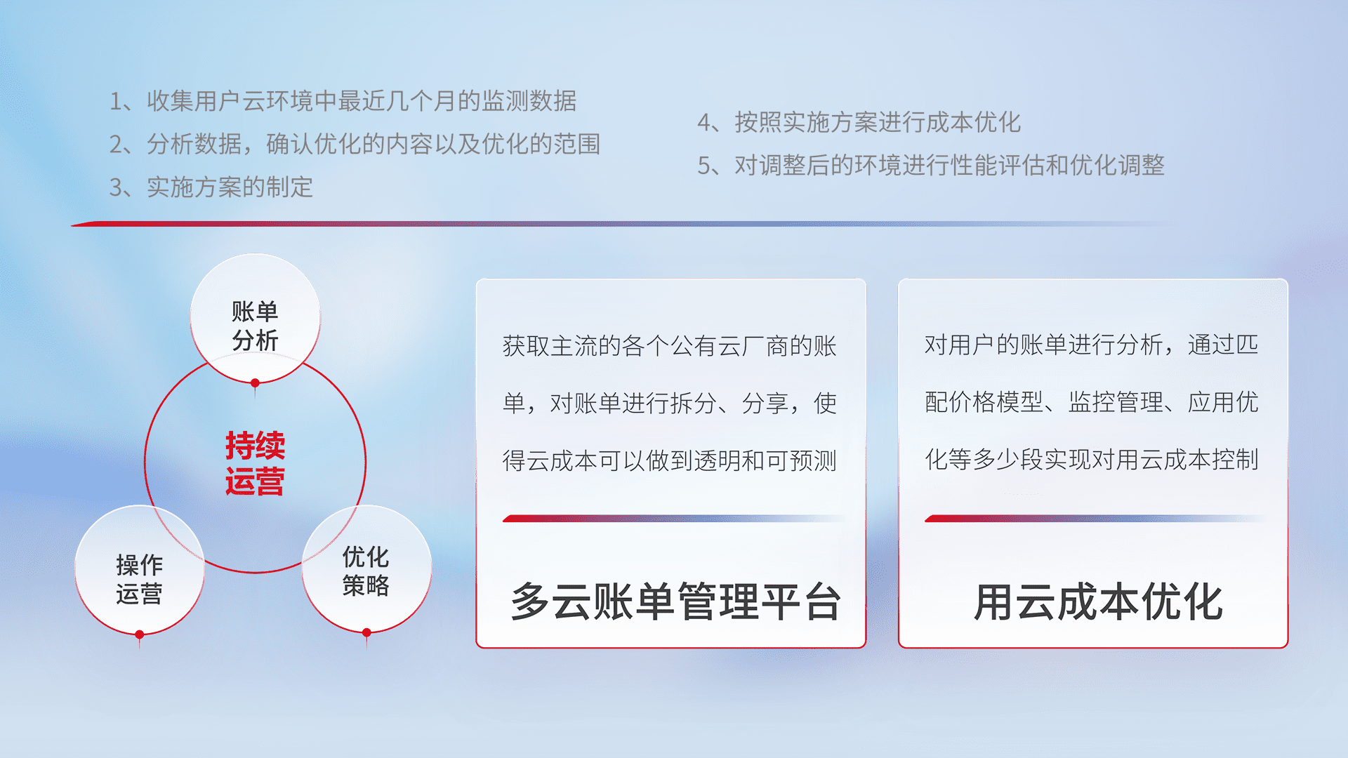 运用智能化工具分析云资源,,提供日常费用可视化工具,,,,自动账单拆分,,,,成本优化云上费用,,,降本增效。。。